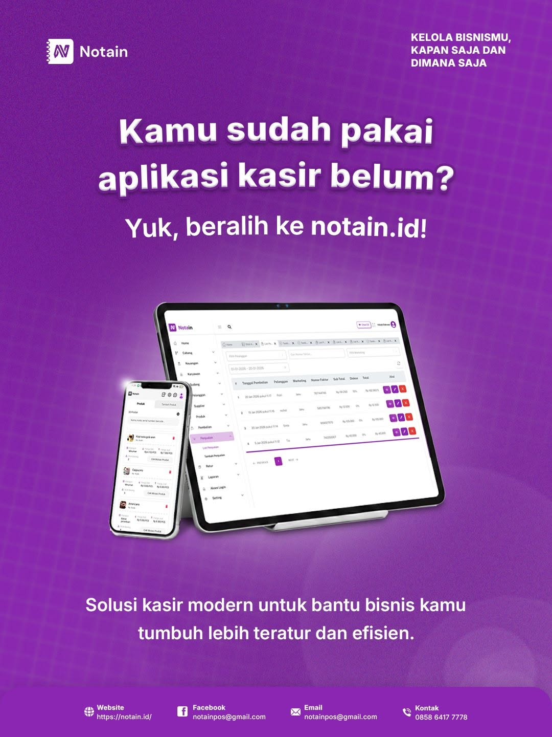 Salah satu solusi terbaik yang bisa Anda gunakan adalah Notain.id, software kasir toko berbasis digital yang dirancang khusus untuk mempermudah pengelolaan usaha secara praktis dan profesional.